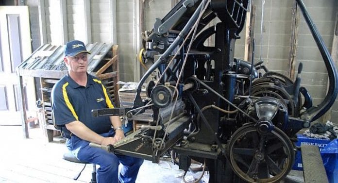 After a lengthy delay, the Courier’s old linotype machine is finally operational, making it one of the world’s oldest operating linotype machines.