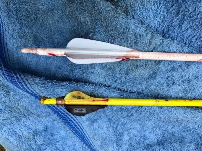 “He had multiple deep lacerations on his right arm and leg, and right under the spine on the other side, because when it tried to run away the arrow had torn shreds off its arm and leg.”