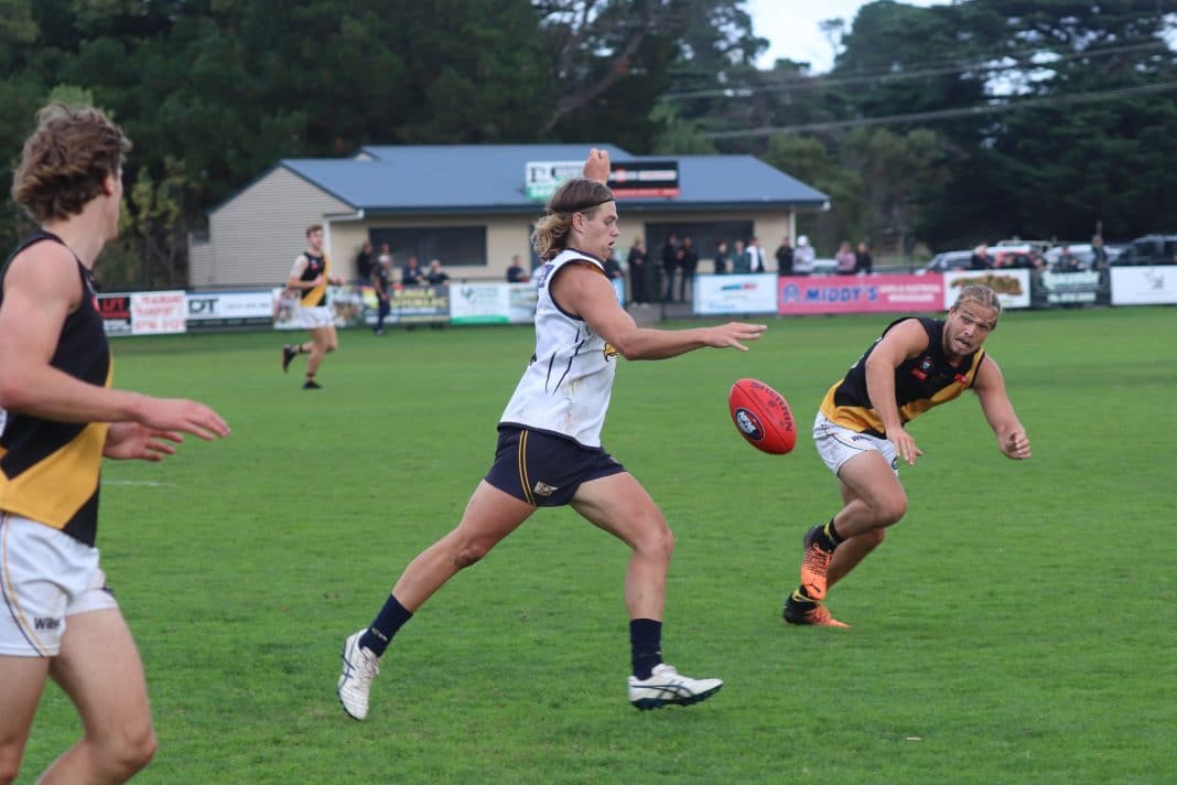 Whittlesea’s Riley Carter looks for option ahead.