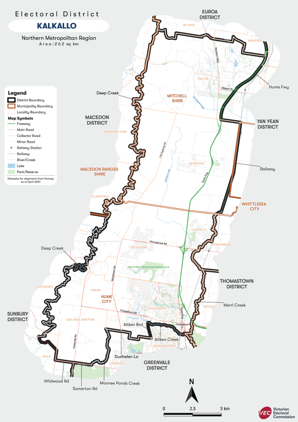 A redistribution of electoral boundaries resulted in the creation of the Kalkallo electorate, with Wallan joining fellow Mitchell Shire township Beveridge in a 262-square-kilometre strip stretching south to Craigieburn.