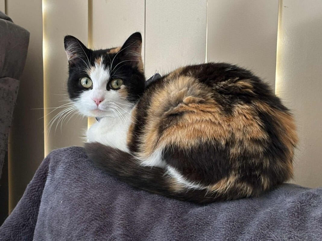 OUR VIP this week is Violet— a tortie cat for short, she has a specific coat coloring pattern that resembles the shell of a tortoise.