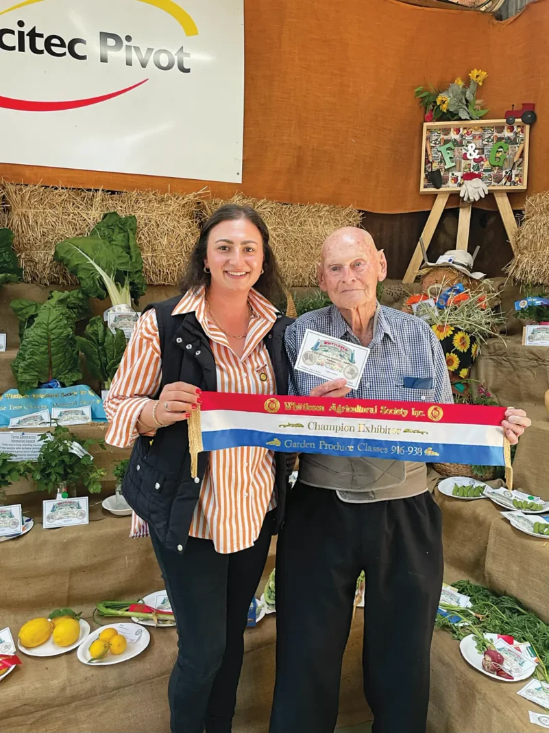 Adding to the celebrations, the Farm and Garden Pavilion, where Eric’s entries were displayed, was awarded Champion Pavilion for 2025. Pavilion Superintendent Stephanie Collins accepted the honour alongside her husband Harrison and Whittlesea Show President Jayson Munro.